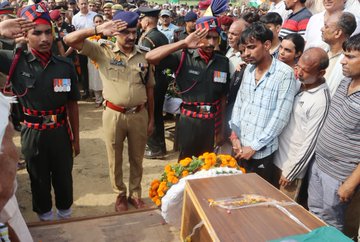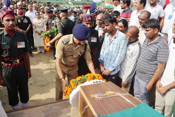 आज शहीद प्रभात गौड़ को उनके पैतृक गाँव आनंदगड़ी थाना नरसेना में पूरे राजकीय सम्मान के साथ जनपद के हजारों लोगों सहित जिलाधिकारी बुलंदशहर श्रीमती श्रुति एवं वरिष्ठ पुलिस अधीक्षक दिनेश कुमार सिंह अपने प्रशासनिक अमले के साथ मौजूद रहकर अंतिम बिदाई दी !